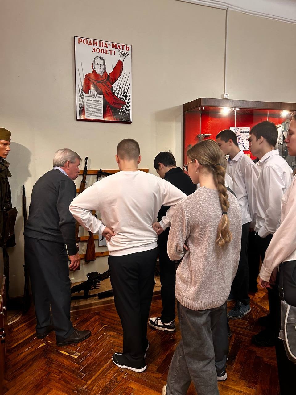 В рамках акции была организована экскурсия в Центр военно-патриотического воспитания молодежи, которую провел руководитель центра Юрий Иванович Шевченко. В ходе экскурсии он рассказал о создании центра, его экспонатах и поделился со школьниками интересными фактами из истории нашей страны.